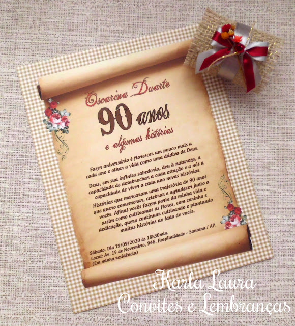A Francinete encomendou esse lindo convite rústico para o aniversário do sua mãe, a senhora Oscarina. Uma família incrível, que amei conhecer.