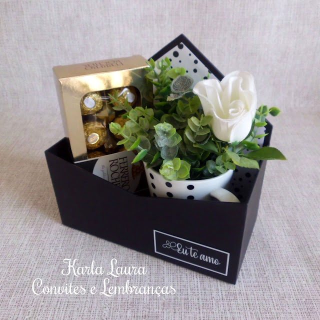 Caixa cartonada, feita em papelão rígido, super resistente. Uma excelente opção para você presentear seu amor.